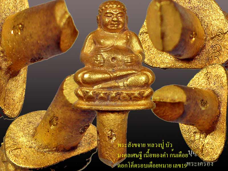 พระสังขจาย มงคลเศษฐี หลวงปู่บัวเนื้อทองคำก้นเดือย หมายเลข 19 ตอกโค็ดรอบเดือย สวยสุดๆๆครับ