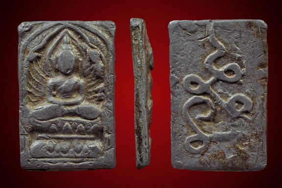 พระหลวงปู่ศุข พิมพ์ประภามณฑลรัศมี เนื้อชินตะกั่ว หลังยันต์นูน
