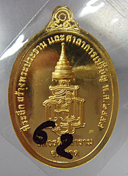 เหรียญกตัญญูเมตตาธรรม เนื้อทองคำ หมายเลข 62. พิธีดี พิธีใหญ่ ที่ระลึกสร้างศาลา พร้อมกล่องอยู๋ในซีลเดิม