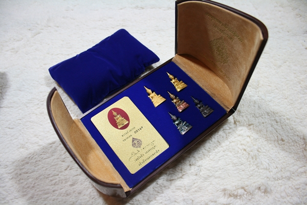 @@@ มีสินค้าอื่นๆอีกมากสามารถเข้าชมได้ที่ร้านค้าครับ @@@ พระแก้วมรกต เนื้อทองคำ กรมสรรพสามิต ชุด 5 องค์ สร้างเนื่องในโอกาสครบรอบ 64 ปีของกรมสรรพสามิต และเนื่องในวโรกาสที่พระบาทสมเด็จพระเจ้าอยู่หัวทรงครองราชย์ครบ 50 ปีในปีกาญจนาภิเษก เมื่อ พ.ศ.2539 เนื้อทองคำ 2 องค์ (ทองคำ 99.99 % หนักองค์ละ 18 กรัม) เนื้อสามกษัตริย์,เนื้อเงิน,และเนื้อนวะรมดำ ครบชุด 5 องค์ หมายเลข 1232 ผลิตโดยแพรนด้าฯ พิธีพุทธาภิเษกใหญ่ที่วัดศรีรัตนศาสดาราม ( วัดพระแก้ว) ชนวนโลหะที่นำมาหลอมได้มาจากเกจิอาจารย์ทั่วประเทศ โดยมีพระเกจิอาจารย์ที่มีชื่อเสียงในสมัยนั้นมาปลุกเสกจำนวน 69 รูป อาทิเช่น อาจารย์นอง วัดทรายขาว, หลวงพ่อเปิ่น วัดบางพระ, หลวงปู่ทิม วัดพระขาว, หลวงพ่อจรัญ วัดอัมพวัน, หลวงปู่คำพันธ์ วัดธาตุมหาชัย, หลวงพ่ออุตตมะ วัดวังก์วิเวการามฯลฯ โดยมีสมเด็จพระสังฆราชเป็นประธานฝ่ายสงฆ์ อุปกรณ์ครบชุด