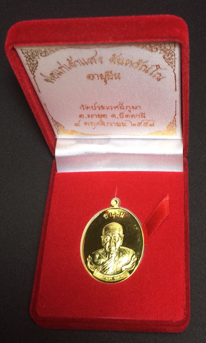 เหรียญพ่อแก่เจ้าแสง รุ่นอายุยืน เนื้อเงิน หน้ากากทองคำ หมายเลข20 วัดบ้านตรัง จ.ปัตตานี สภาพสวยงามมาก