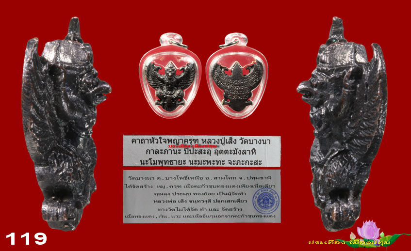 ครุฑ หลวงพ่อ เส็ง วัดบางนา รุ่นแรกปี 2522 เมตตา มหาอำนาจ เนื้อตะกั่วชุบทองแดง รมดำ