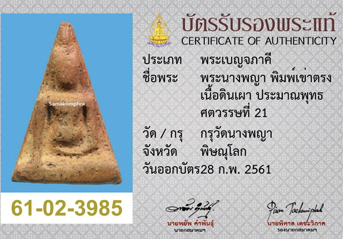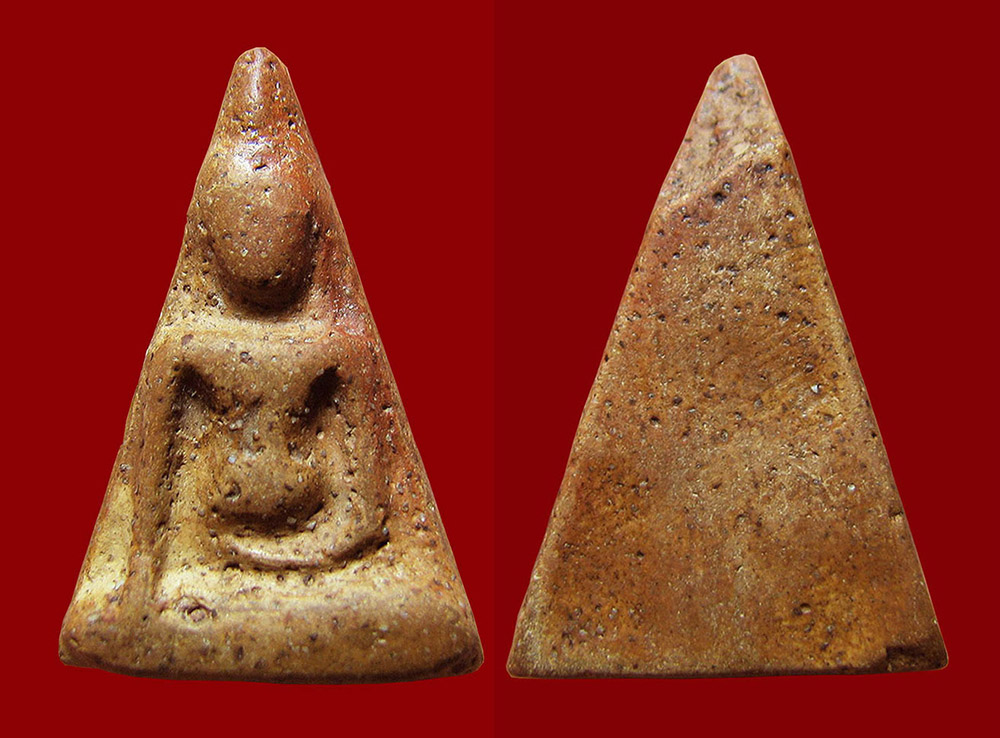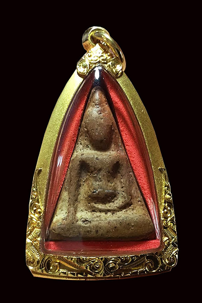 พระตัดได้สมมาตรผ่านการบูชามาบ้างมีบิ่นปลายมาแต่เดิมจากกรุ...หนึ่งในเบญจภาคีที่หาได้ยากยิ่ง.... มีใบรับรองพระแท้ออกให้โดยสมาคมผู้นิยมพระเครื่องพระบูชาไทยพร้อมตลับทองปิดหลังอย่างหนาครับ