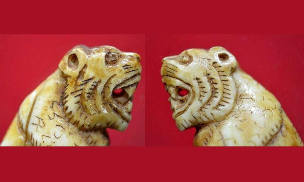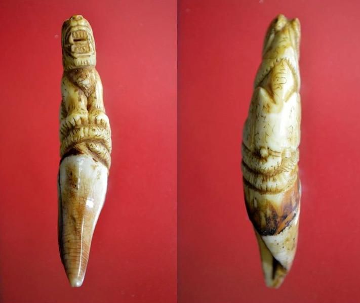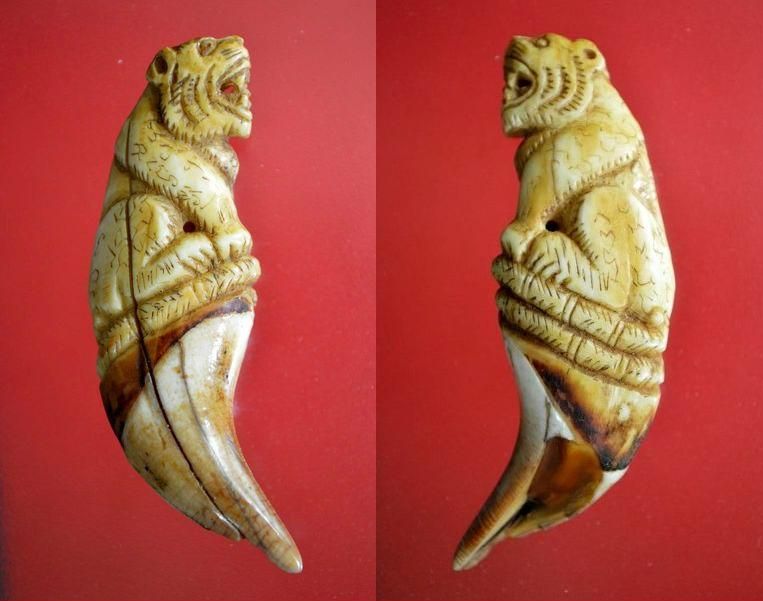 เสือเขี้ยวแกะ หลวงพ่อคง วัดวังสรรพรส จันทบุรี แกะจากเขี้ยวหมี ยาว 2.8 นิ้ว(7 เซ็น) ศิลป์การแกะชัดเจน เก่าสมอายุ หาตัวจริงยากครับ