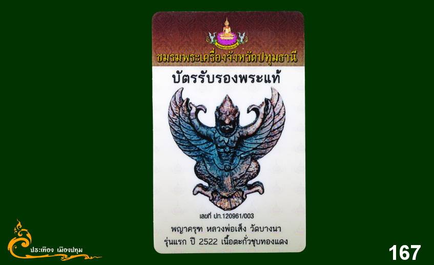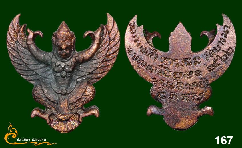 พญาครุฑ หลวงพ่อเส็ง วัดบางนา เมตตามหาอำนาจ เนื้อตะกั่วชุบทองแดง ผิวไฟ รุ่นแรก ปี 2522