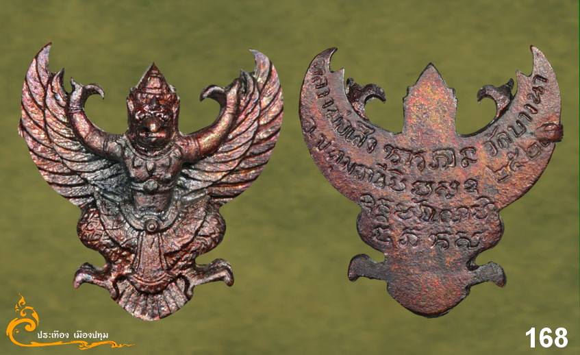 พญาครุฑ หลวงพ่อเส็ง วัดบางนา เมตตามหาอำนาจ เนื้อตะกั่วชุบทองแดง ผิวไฟ รุ่นแรก ปี 2522