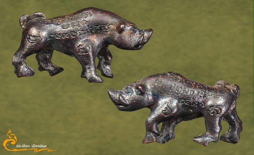 หมูตัวใหญ่ หลวงพ่อเส็ง วัดบางนา เนื้อตะกั่วชุบทองแดง รุ่นแรก ปี 2521
