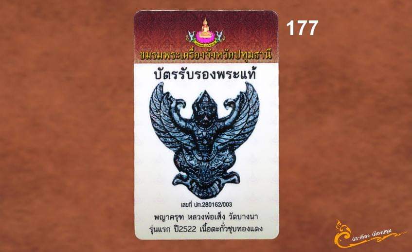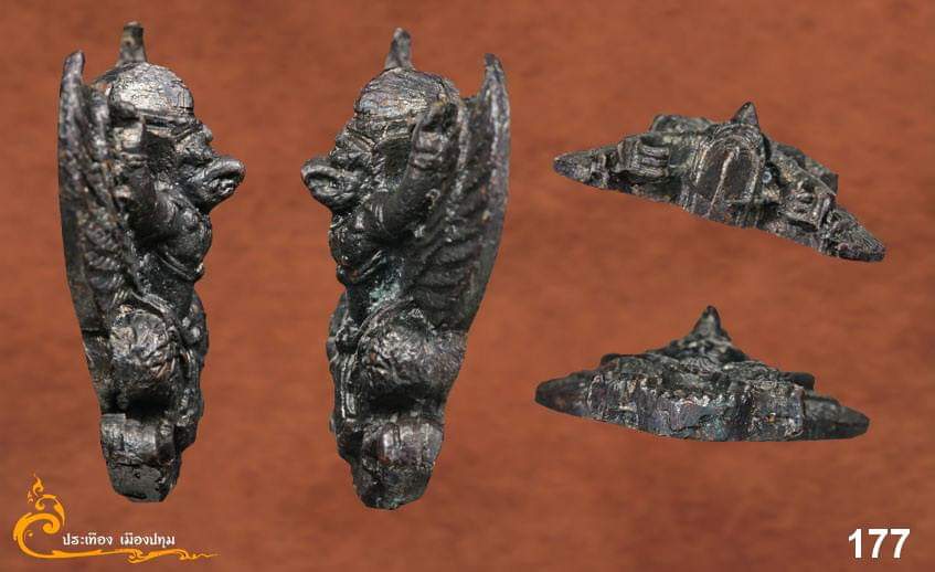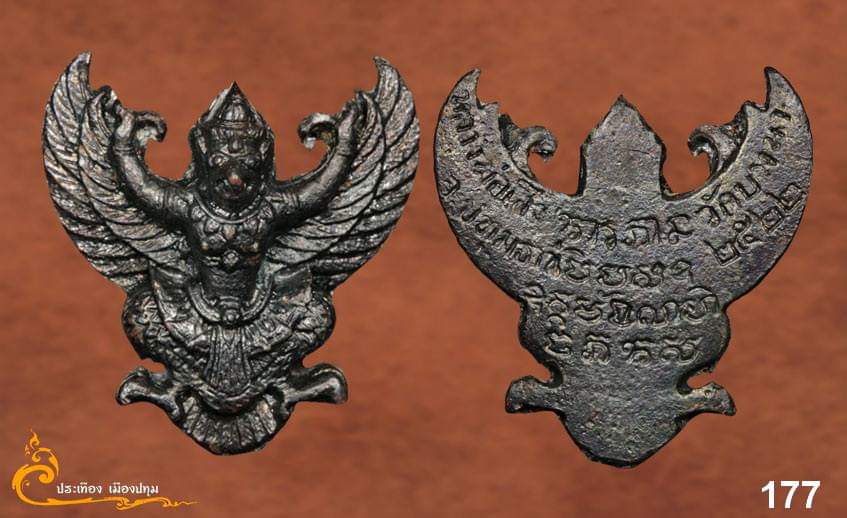 พญาครุฑ หลวงพ่อเส็ง วัดบางนา เมตตามหาอำนาจ เนื้อตะกั่วชุบทองแดง ผิวรมดำ รุ่นแรก ปี 2522