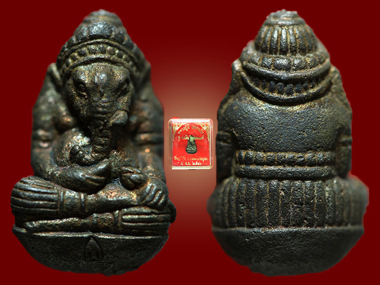 พระพิฆเนศวร์ชนะเงิน หลวงพ่อมี วัดมารวิชัย นวะโลหะกลับดำ เบ้าทุบดินไทยพิมพ์ใหญ่