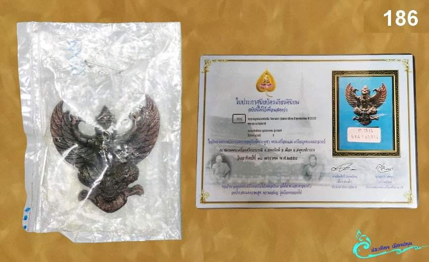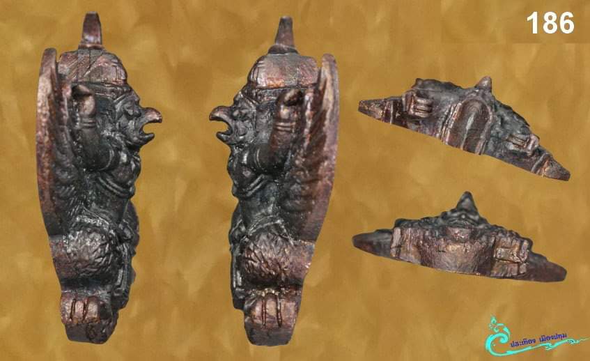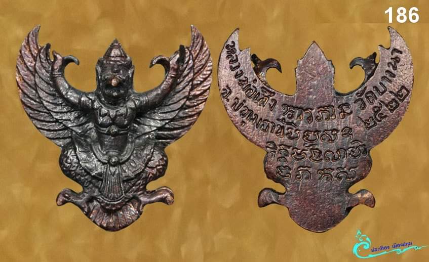 พญาครุฑ หลวงพ่อเส็ง วัดบางนา เมตตามหาอำนาจ เนื้อตะกั่วชุบทองแดง ผิวไฟ รุ่นแรก ปี 2522