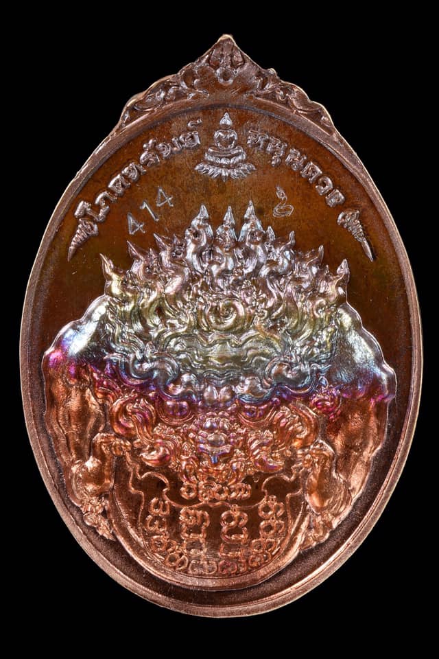 เหรียญพระแก้วดอนเต้าหลังพระราหู รุ่นแก้วสารพัดดี เนื้อชนวนโค๊ตพญานาคมีน้อยจำนวนการสร้าง 599 เหรียญ หมายเลข 414 รวมกันได้เลข 9 มหามงคล