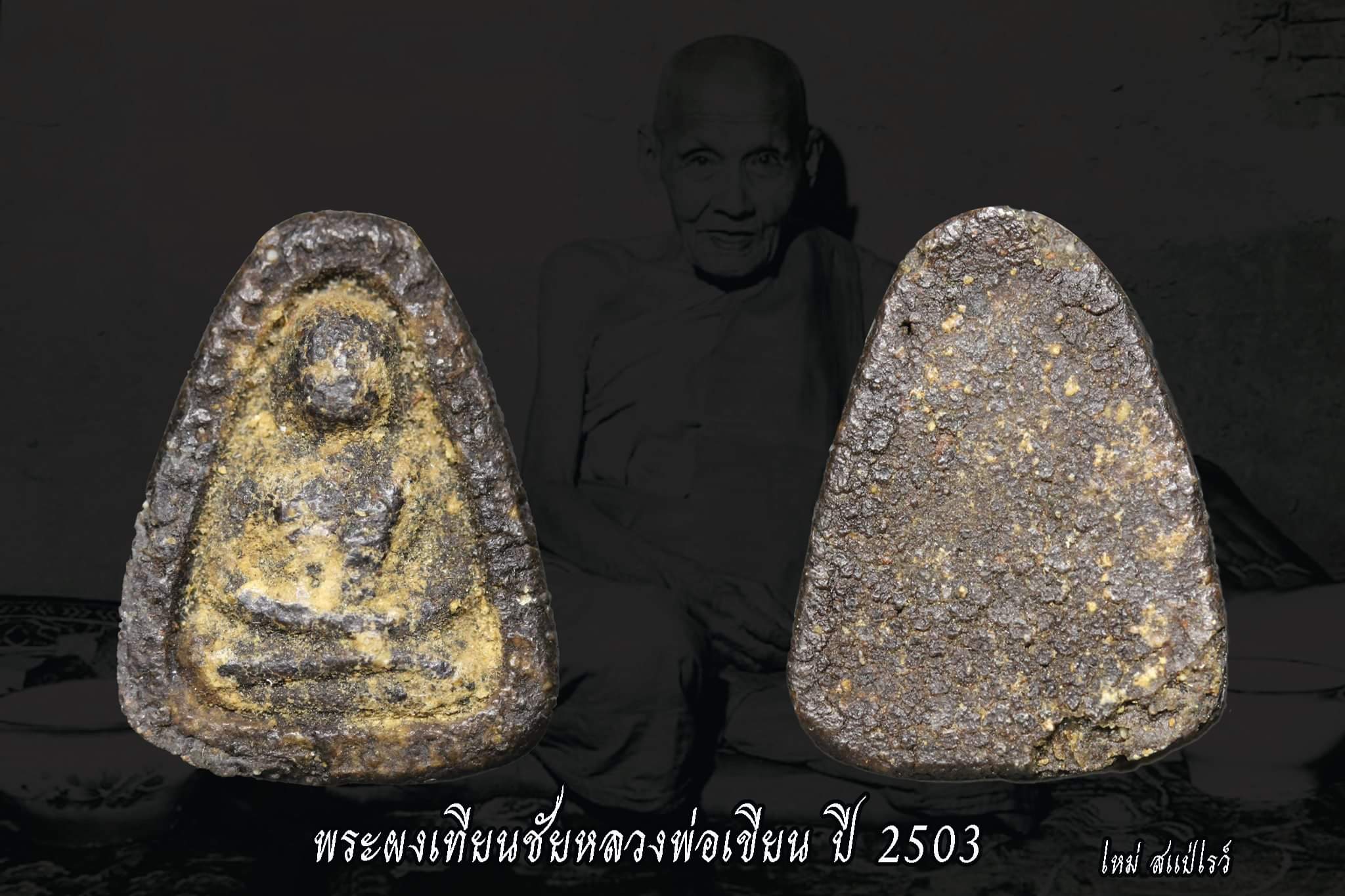 พระผงเทียนชัย หลวงพ่อเขียน ปี 2503 เนื้อออกใบลานสีดำ