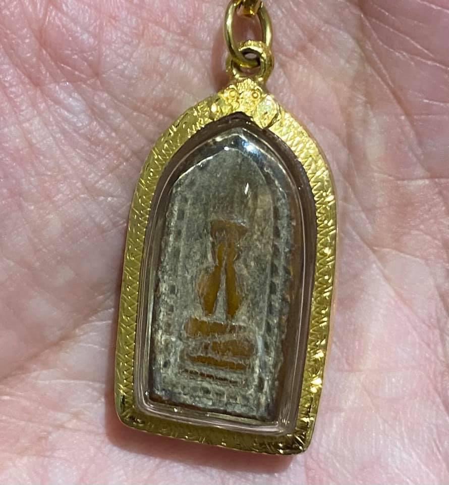 นางกวักงาแกะหลังพระปิดตา หลวงพ่อเดิมวัดหนองโพ เลี่ยมทองพร้อมใช้