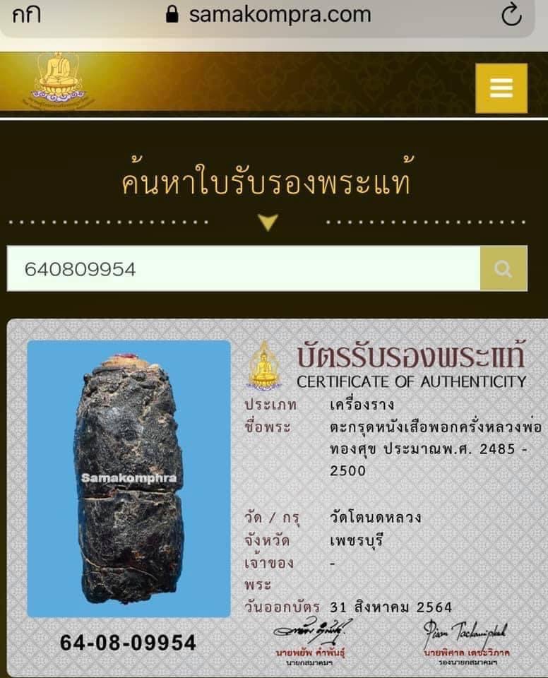 ตะกรุดหนังเสือพอกครั่ง หลวงพ่อทองศุข วัดโตนดหลวง จ.เพชรบุรี ขนาด 1.5 นิ้ว พร้อมเชือกจากเจ้าของเดิมที่เคยใช้ติดมาด้วยกับตะกรุด..จัดเป็น1ใน9เครื่องมงคล ดั่งคำโบราณที่กล่าวไว้ว่า "ครั่งเหลือร้ายวัดโตนดหลวง" #ตะกรุดที่ทำจากหนังเสือนั้นจัดสร้างช่วงยุคต้นและจำนวนการสร้างน้อย..หายากครับ#ดอกนี้ตัวจริงเนื้อเก่าจัดมันส์ชัดเจนมาตรฐานแท้ดูง่าย เลี่ยมทองพร้อมใช้ครับผม