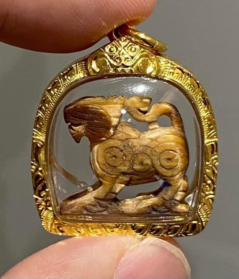 สิงห์งาแกะหลวงพ่อหอม เก่ามันส์ แท้ดูง่าย เลี่ยมทองพร้อมใช้