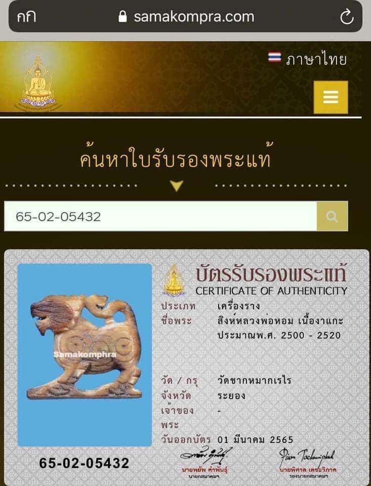 สิงห์งาแกะหลวงพ่อหอม วัดชากหมาก จ.ระยอง
