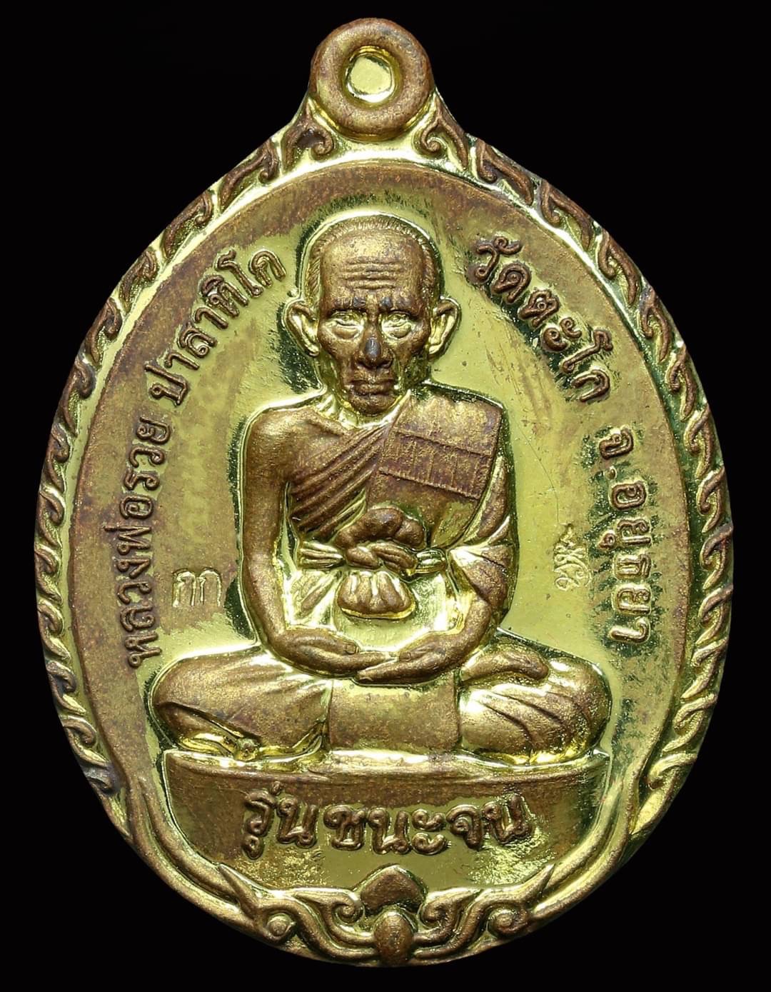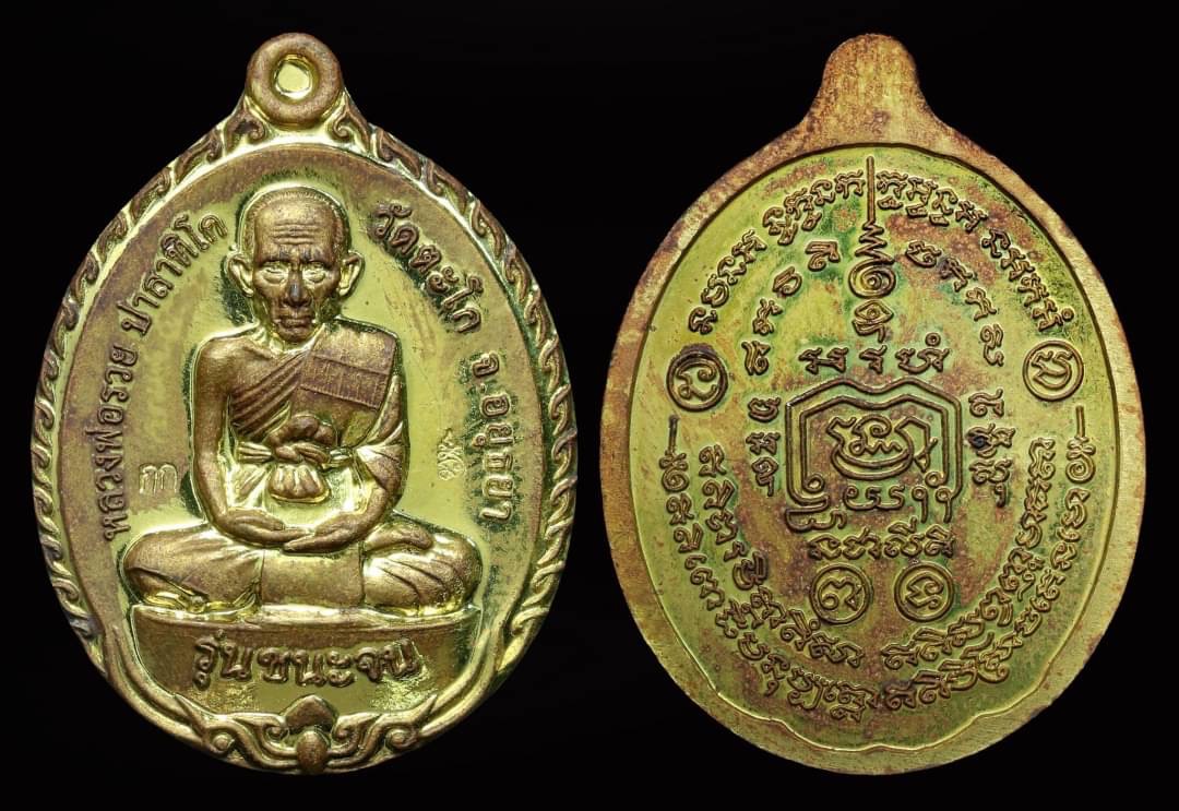 เหรียญชนะจนหลวงพ่อรวย วัดตะโก รุ่นชนะจนพิมพ์เล็ก ปี2556 เนื้อทองฝาบาตร ชุดกรรมการ ตอกโค๊ต