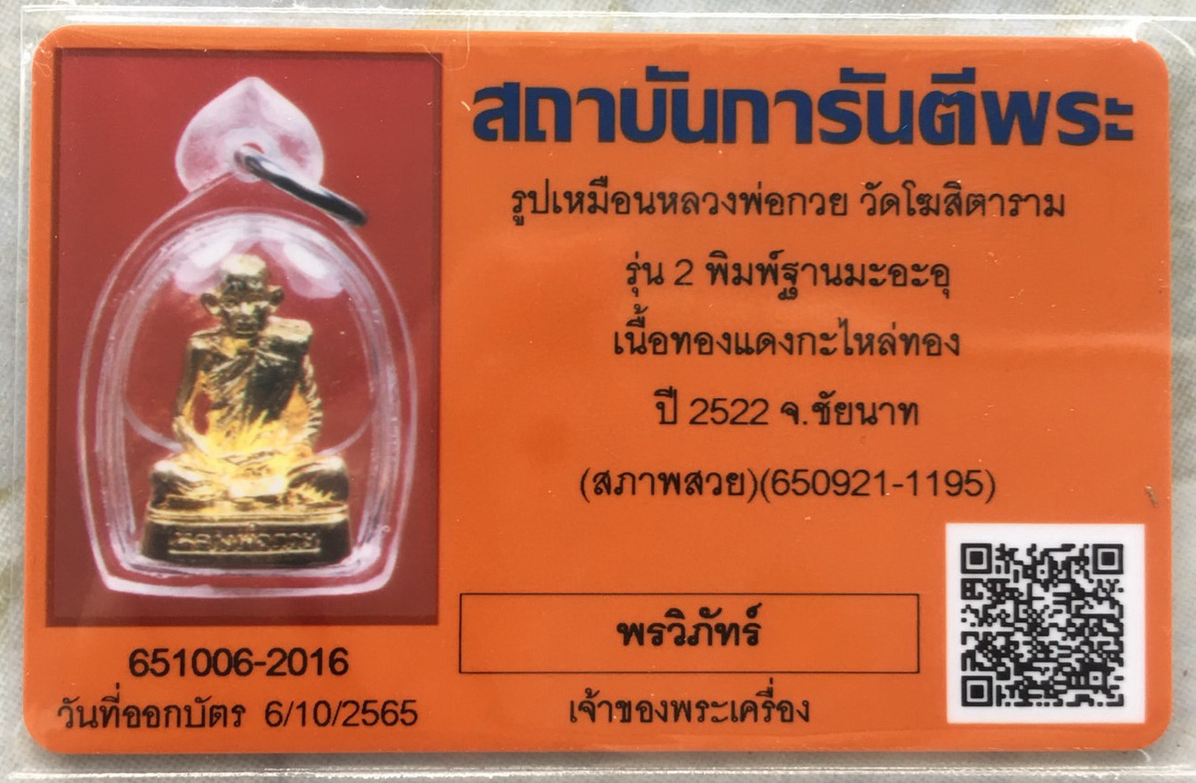 รูปเหมือน หลวงพ่อกวย วัดโฆสิตาราม รุ่น 2 พิมพ์ฐานมะอะอุ เนื้อทองแดงกระไหล่ทอง ปี 2522 (สภาพสวยไว้ล่าแชมป์) ชัยนาท พร้อมกล่องเดิมๆ จากวัด + บัตรการันตีพระสภาพสวย (ติดต่อสอบถามเพิ่มเติมโทร./ไลน์ 0819711350)