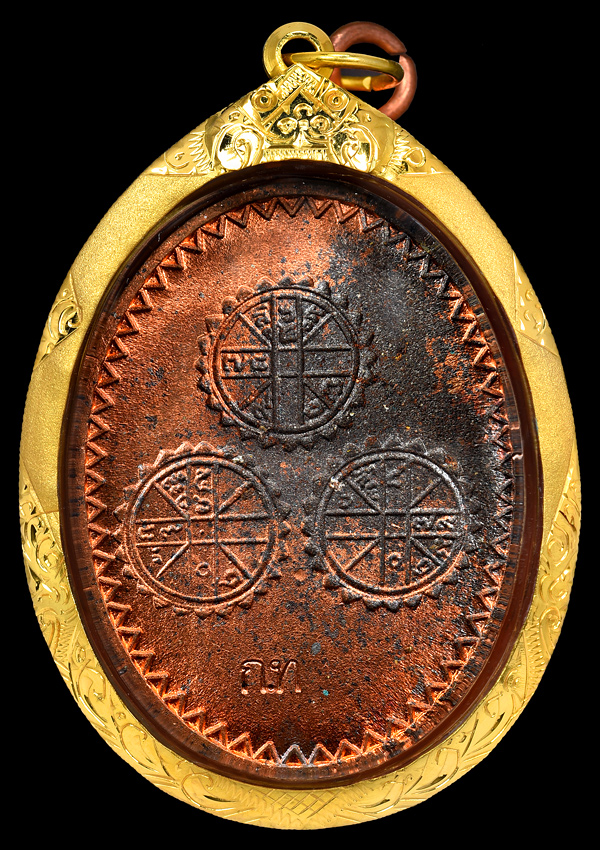 เหรียญยันต์ดวงพุทธาลัย เนื้อนวะโลหะ (ตอก กท) วัดถ้ำขุนแผน ปี 2562 พลิกชีวิต เสริมดวงเสริมบารมี บันดาลโชคลาภ ป้องกันภัย ทั้งปวง เลี่ยมทอง