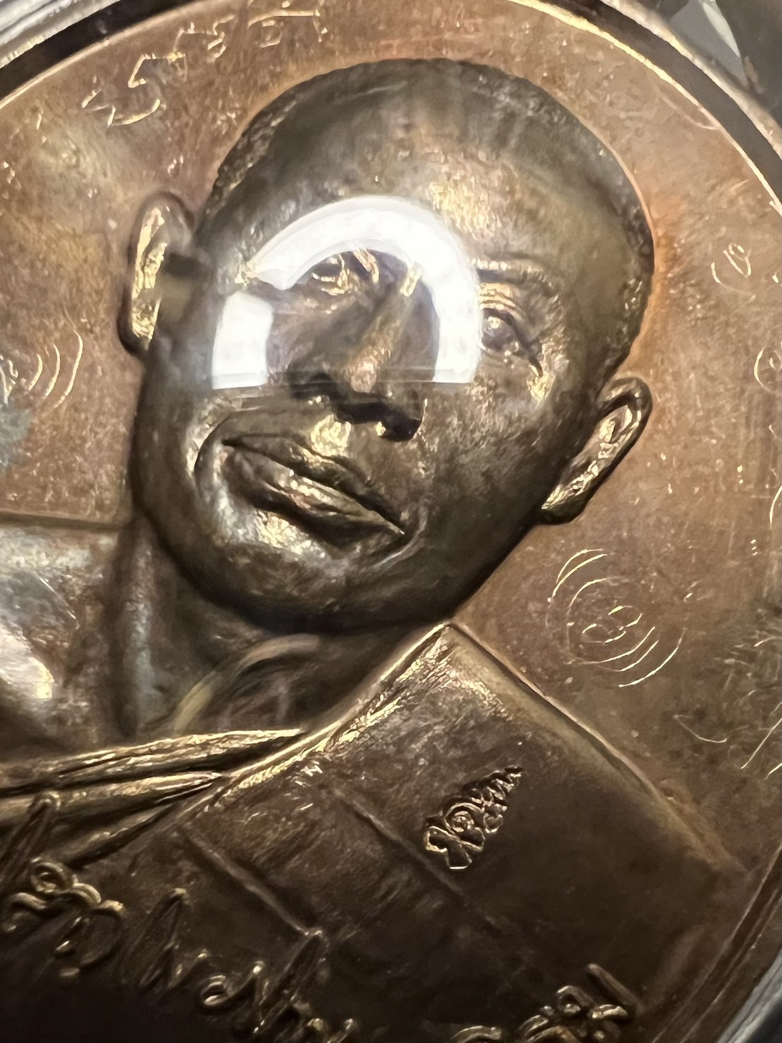 เนื้อชนวน พิเศษหลวงพ่อจารให้ทั้งด้านหน้า-หลัง ผิวเหรียญดูง่ายเนื้อชนวนไม่หลอมละลาย