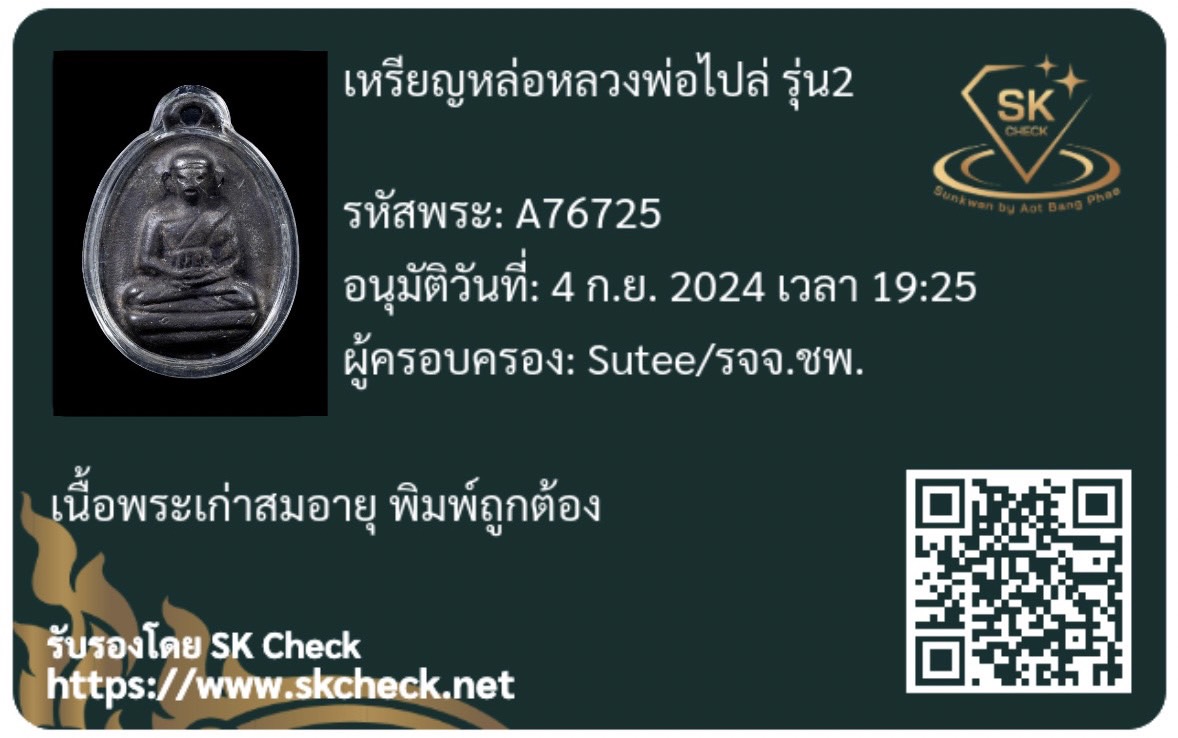 สร้างหอพระไตรปิฎก ตอกโค๊ตเต็มชัด สภาพสวยแชมป์ครับ เหรียญหล่อหลวงพ่อไปล่ จัดเป็นเหรียญหล่อที่มีพุทธคุณสูงโดยเฉพาะในด้านคงกระพันชาตรี สุดยอดประสบการณ์ คนพื้นที่และต่างแดนต่างต้องหามาบูชา น่าบูชามากๆครับ รุ่นนี้มีการอัญเชิญดวงวิญญาณหลวงพ่อไปล่ลงมา และผสมชนวนเก่ารุ่นแรกที่ทางวัดได้เก็บไว้ รุ่นแรกราคาหลายล้านบาท เป็นเหรียญหล่อยอดนิยมไปแล้วครับ รุ่น 2 เป็นอีกรุ่นที่น่าใช้และควรค่าแก่การบูชา ราคาจับต้องได้ ประสบการณ์หายห่วงครับ พิธีใหญ่ มวลสารเข้มขลังผสมชนวนเก่ามากครับ เป็นพระดีอีกรุ่นหนึ่ง พร้อมรับประกันเเท้ตลอดชีพครับ