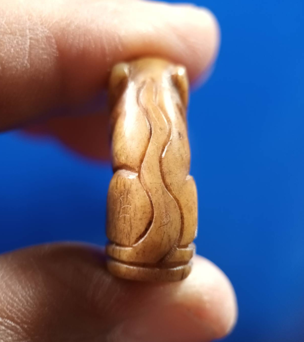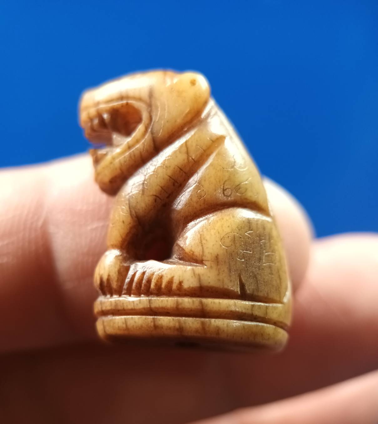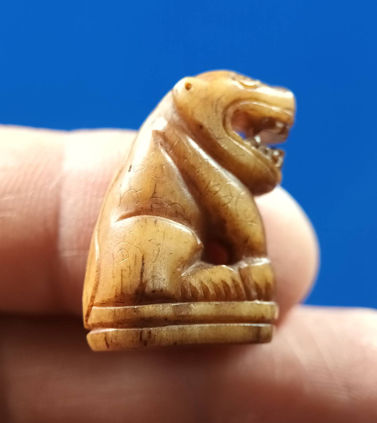 เสืออ้าปากแกะจากกระดูกหลวงพ่อสาย วัดบางเหี้ยคลองด่าน ( ตัวใหญ่แกะจากกระดูก ) เสืออ้าปากแกะจากกระดูกลงจารย์ลงอักขระครบสูตรหายากเก่าสวยคมชัด พระบ้าน.จ.สมุทรปราการ.