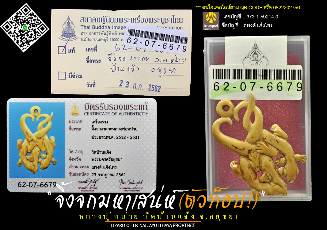 จิ้งจกหลวงปู่หน่าย+บัตรสมาคม [Lizard of LP. Nai]