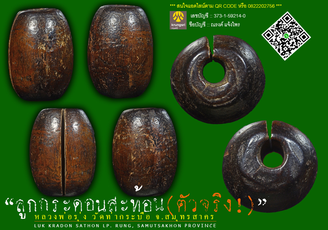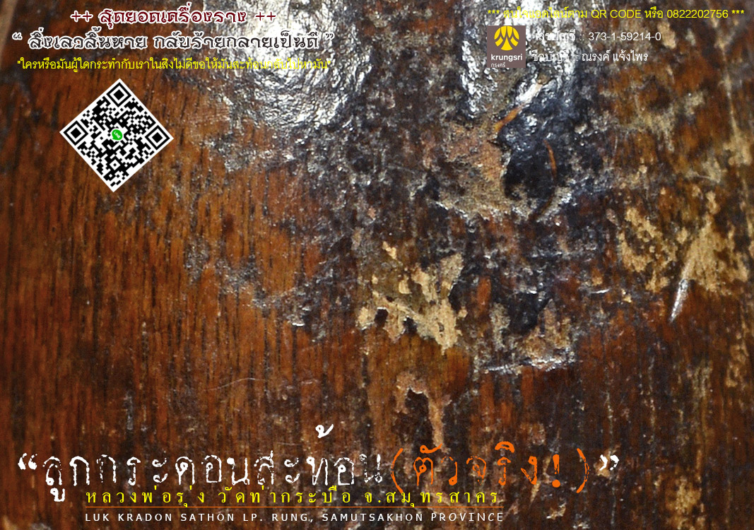 ***** [ Price xx,xxx ฿ ] Luksatorn LP. Rung, Wat Targrabue, Sumutsakhon Province. Made from wood. Size : Width x Length = 1.3 x 1.8 cm. This item is original from owner and over 100 years old. If you are interest, Feel free to contact me via Line application or call to me.