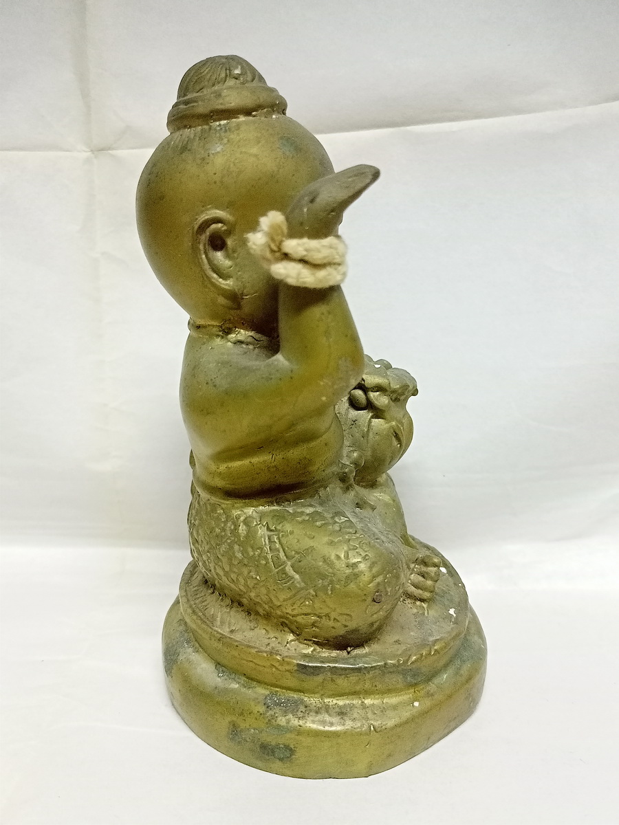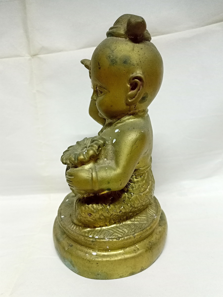กุมารทอง ใต้ฐานฝังกุมารเนื้อผงอาถรรพ์ + ชิ้นอาถรรพ์ + ตะกรุดสะกดวิญญาณ เนื้อโลหะ ขนาดสูง 5.5 นิ้ว