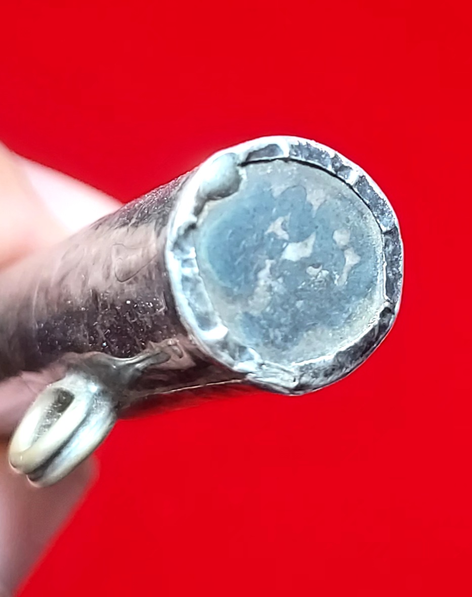 มีจารเต็ม ด้านนอกและใน ด้านนอกมองเห็นตัวจาร " ยันต์พุฒซ้อน "ชัดเจน