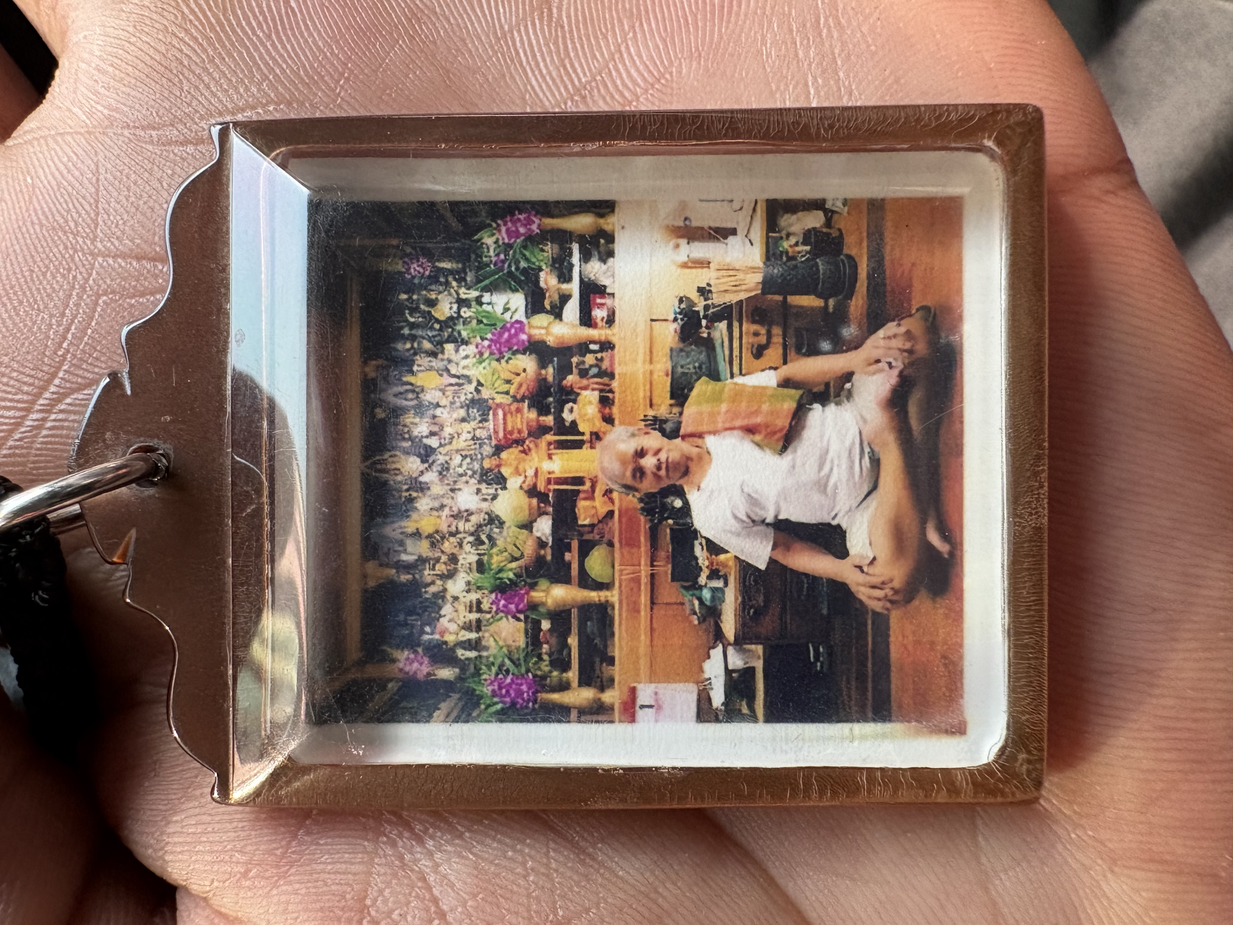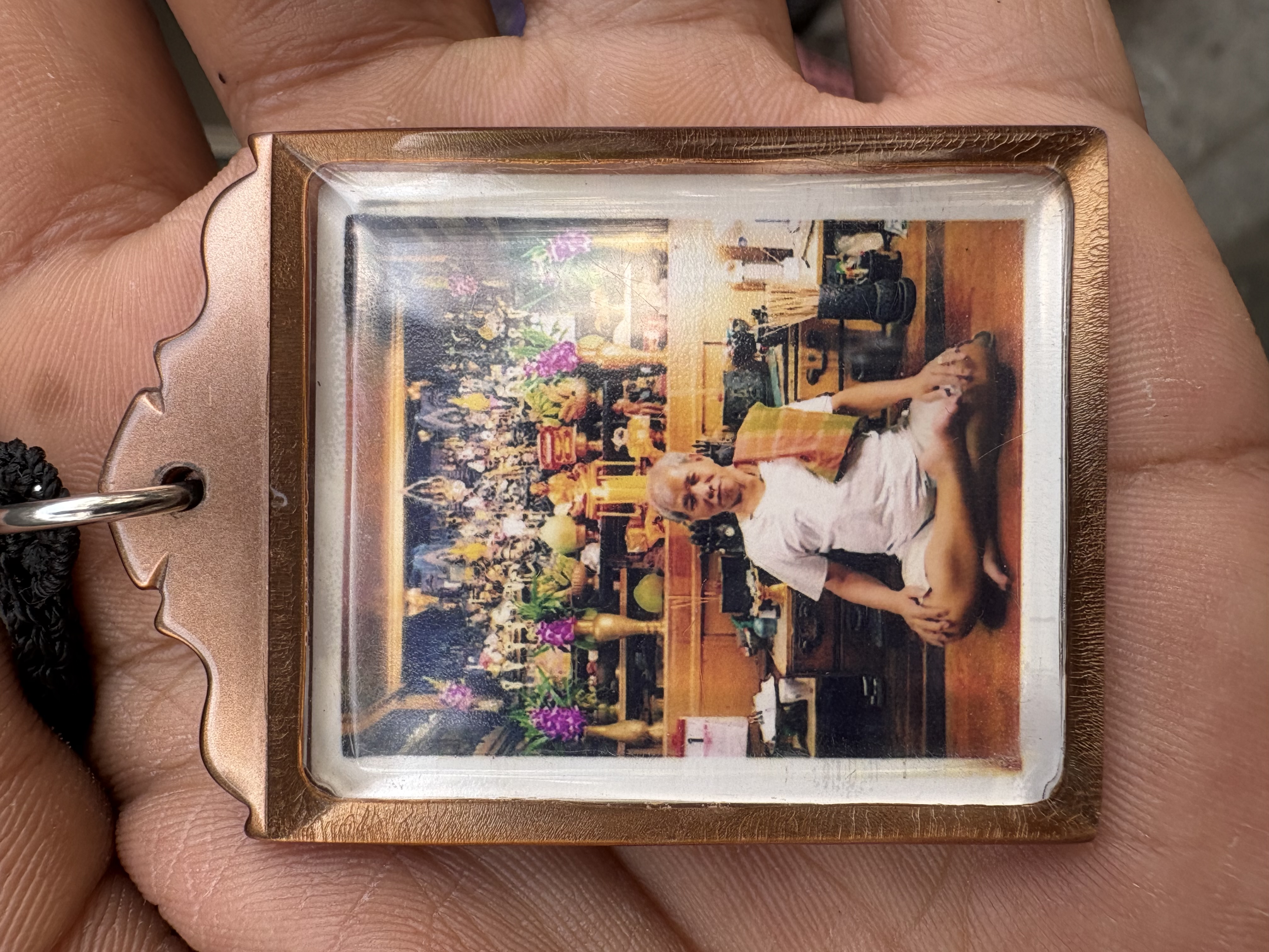 รูปถ่ายพ่อป่อง ฉากดอกไม้ม่วง หลังจารยันต์ขนมเปี๊ยะ ลายมือเก่าๆ10ปี+
