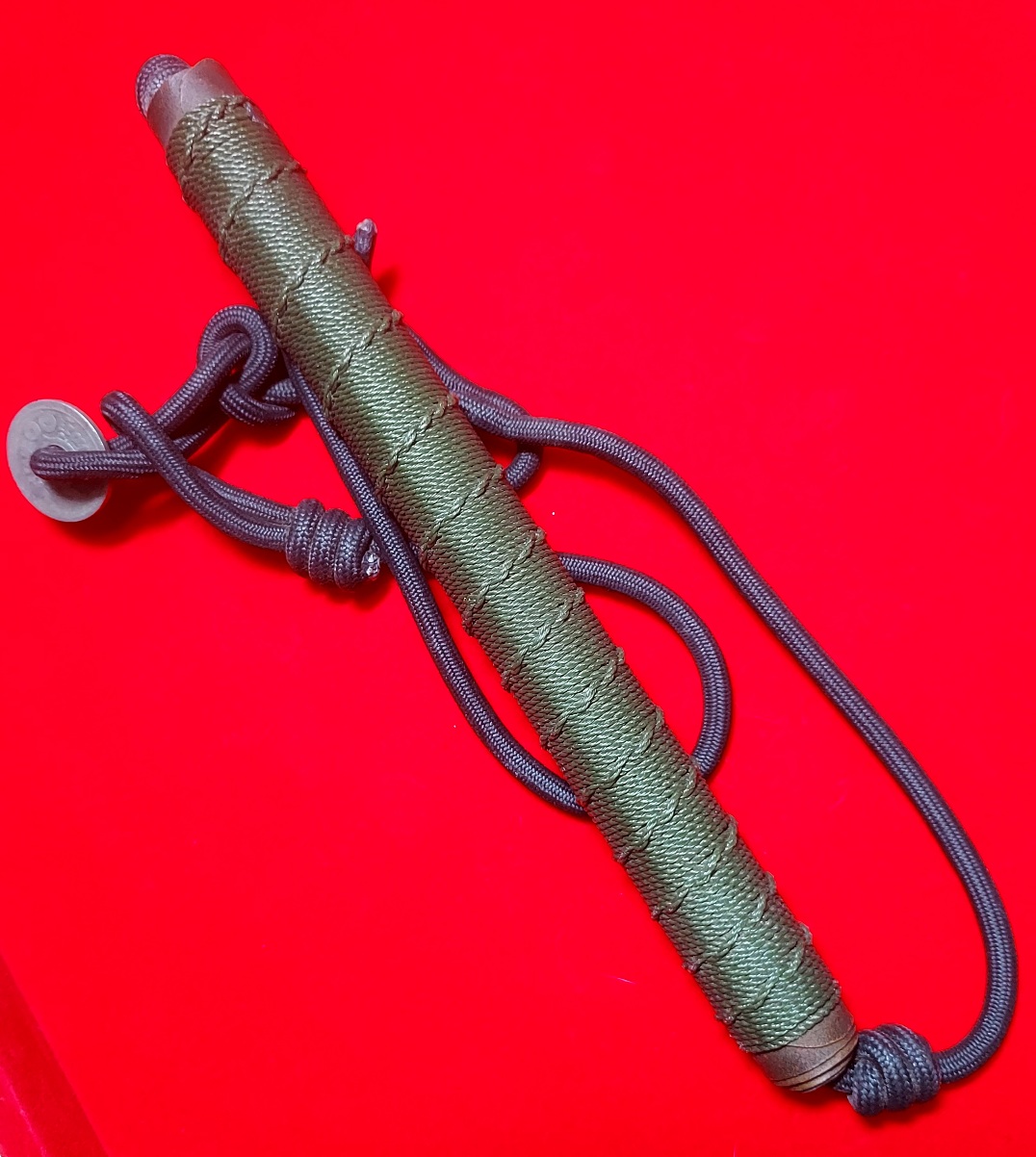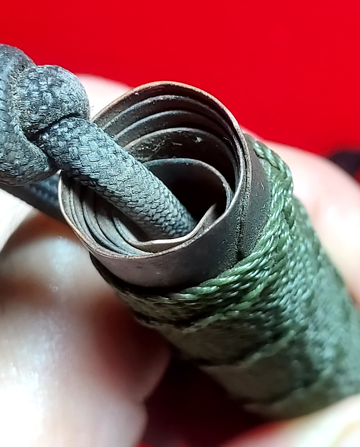 ตะกรุดดอกนี้ เดิมทีเชือกได้เปลื่อยหลุดออกจนหมด เจ้าของคนล่าสุดได้นำมาถักเชือกใหม่ด้วยเชือกไนล่อน เพื่อนำมาใช้ติดตัวบูชา