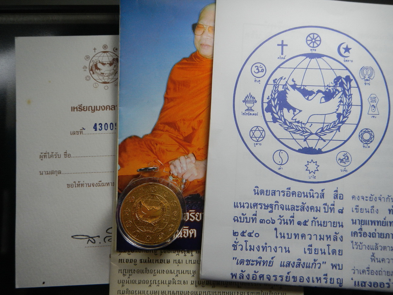 เหรียญมงคลจักรวาลรวม 12 ศาสนา สำนักปู่สวรรค์ ปี2538