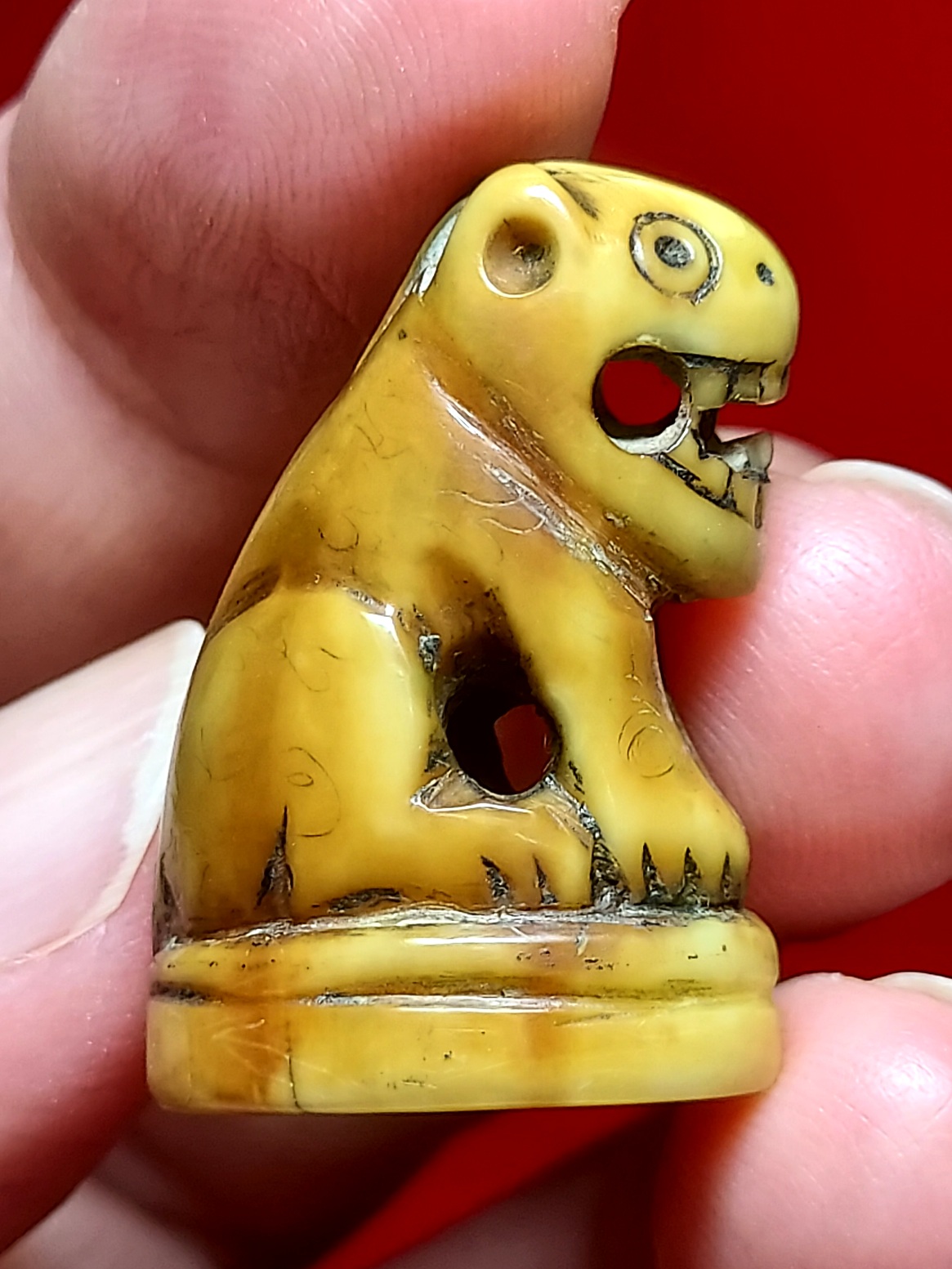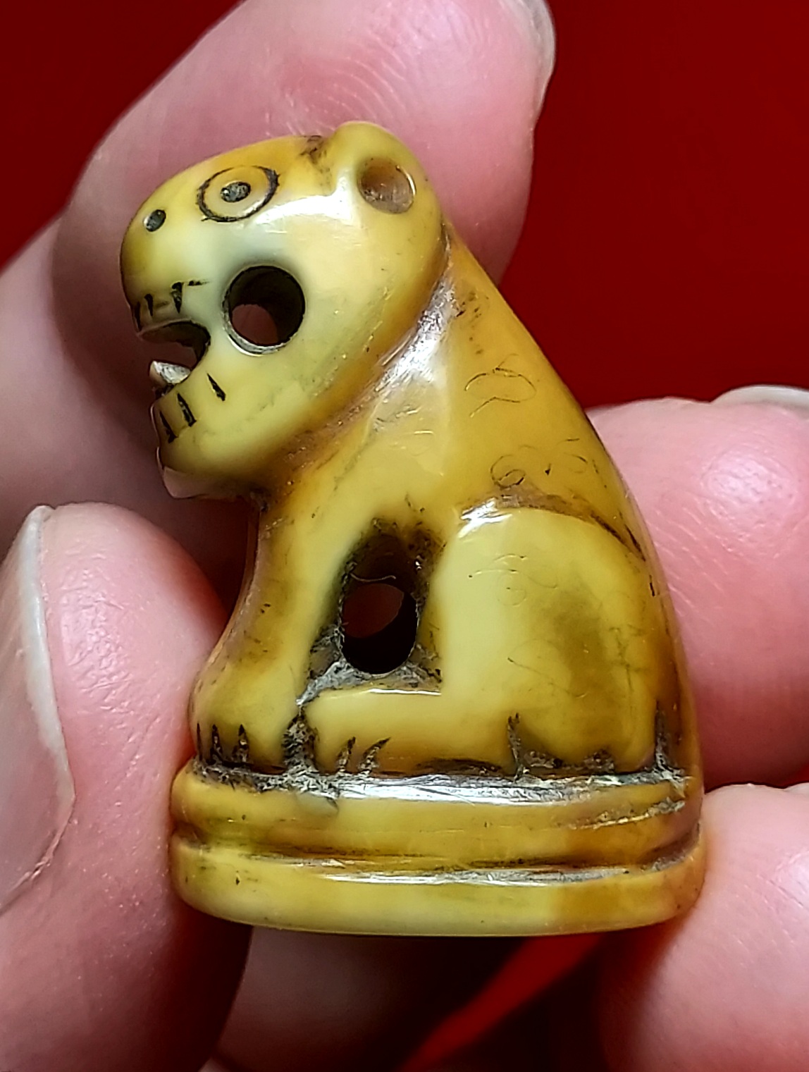 ปกติเสือของท่านจะแกะจากเขี้ยวหมู 90% ที่เหลืออาจจะเป็นเขี้ยวหมีหรือเขี้ยวเสือ